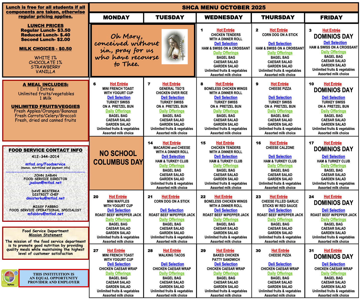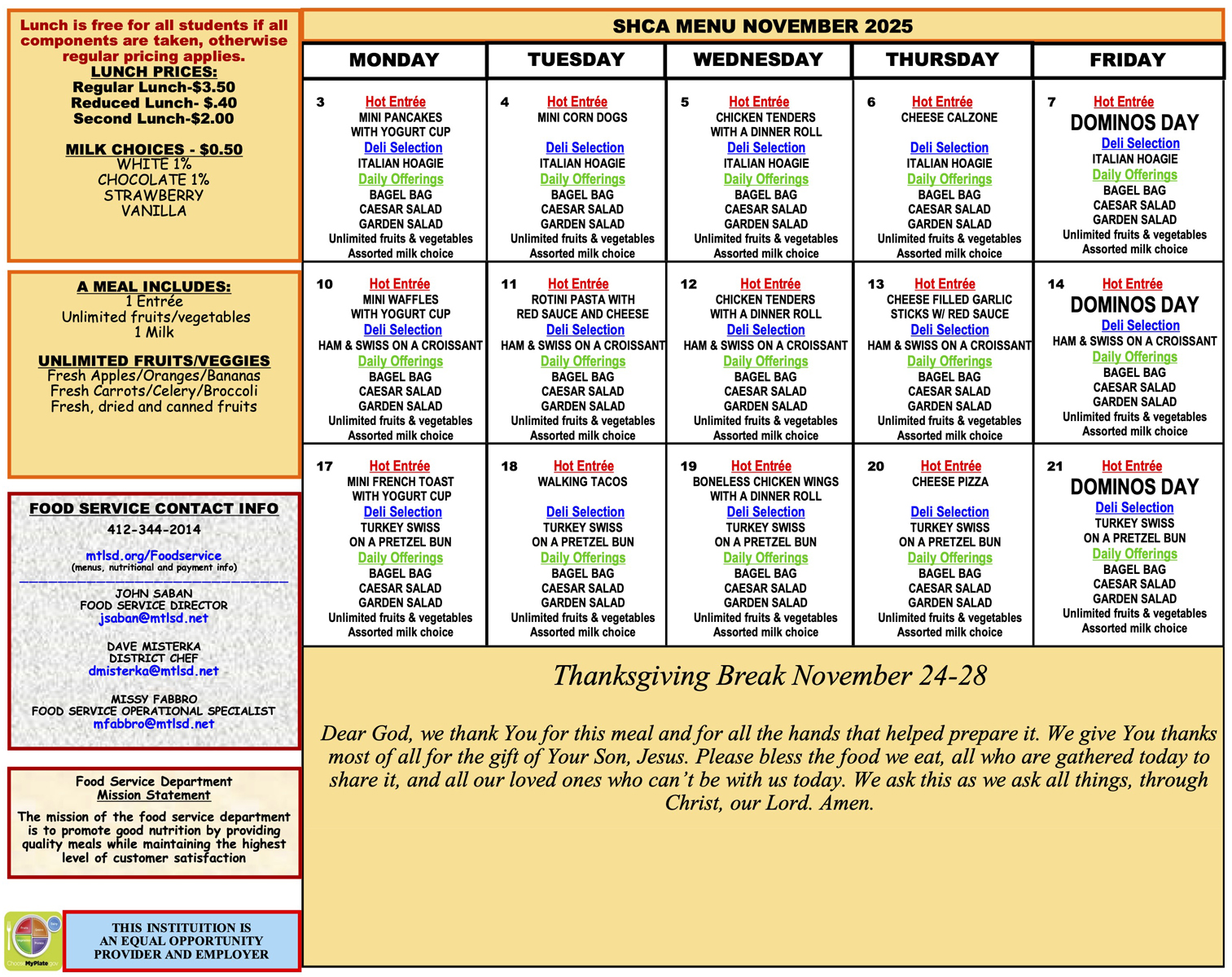 All enrolled students of South Hills Catholic Academy are eligible to receive a nutritional breakfast and lunch each school day at no charge to your household.